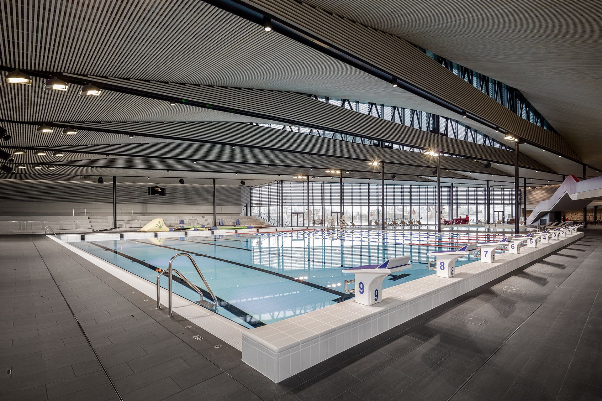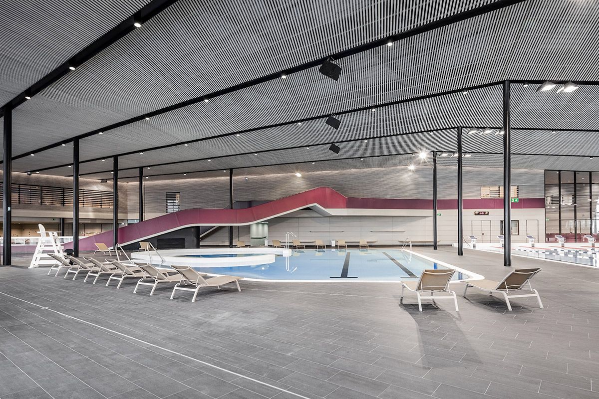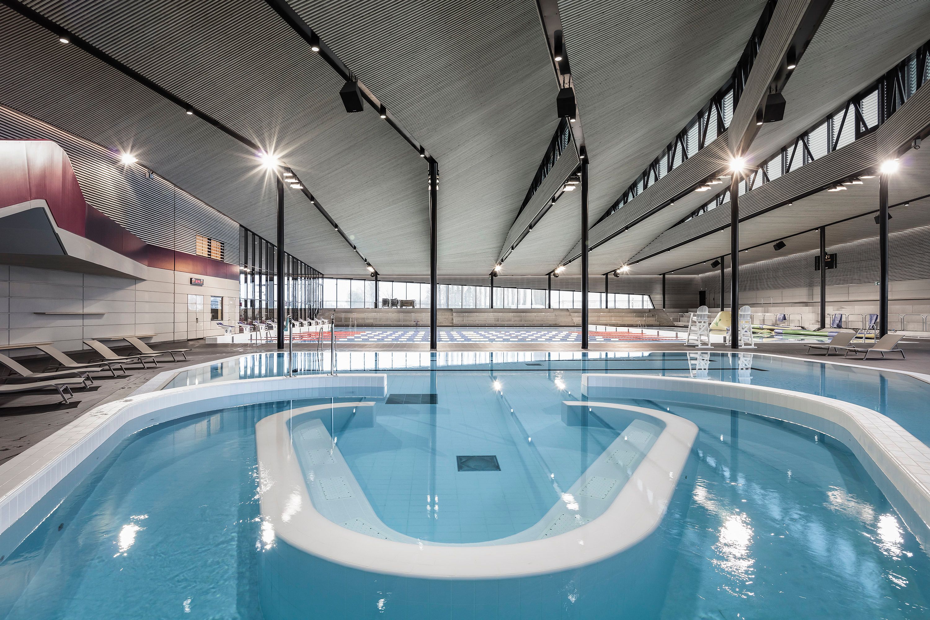 In Douai wird das neue Ökoquartier „Le Raquet“ einen neuen Teil der Stadt bilden, und das Centre Aquatique de Douai ist ein wesentlicher Bestandteil davon. Das Projekt entwickelt sich in Richtung der zukünftigen Straßenbahnhaltestelle und des zukünftigen städtischen Vorplatzes, der "Place Majeure", dem Herzen des neuen Viertels, an der Schnittstelle einer städtischen Struktur und eines städtischen Parks. Der Kontrast zwischen der städtischen Umgebung im Norden und Osten und dem Park im Süden und Westen erfordert eine architektonische Antwort, die diese Gegensätze miteinander verbindet. Die beiden Fassaden auf der Ebene der Eingangshalle sind vollständig transparent. Sie bieten somit einen kontinuierlichen Blick von den Innenbecken zu den Außenbereichen, während das Dach wie eine "fünfte Fassade" eine begrünte Kaskade bildet, die für die ökologischen Ambitionen des Viertels steht. Auf der anderen Seite, an der Grenze zum Stadtpark, zeichnet sich das Gebäude wie ein großer Hügel ab, wobei sich die Außenbereiche in Form von Terrassen auf verschiedenen Ebenen in der Nähe des Schwimmbads entwickeln und so eine Kontinuität und Erweiterung des Stadtparks herstellen. Das Gebäude wird durch die Anlage von bepflanzten Höhenlinien, die einer Reisfeldlandschaft ähneln, zur Landschaft. Diese beherbergen die Außenbecken und ihre Strände. Die Hauptherausforderung des Wellnessbereichs besteht darin, den Besucher in eine Atmosphäre der Entspannung einzuladen und in diese einzutauchen. Der Ort ist eine Einladung zu einer Reise, die alle Generationen um die Eindrücke großer Landschaften herum vereint. Alle fünf Sinne werden angesprochen, um das Publikum in einen entrückenden Wellness-Parcours und ein einzigartiges Erlebnis im Herzen des Stadtteils Raquet zu versetzen.