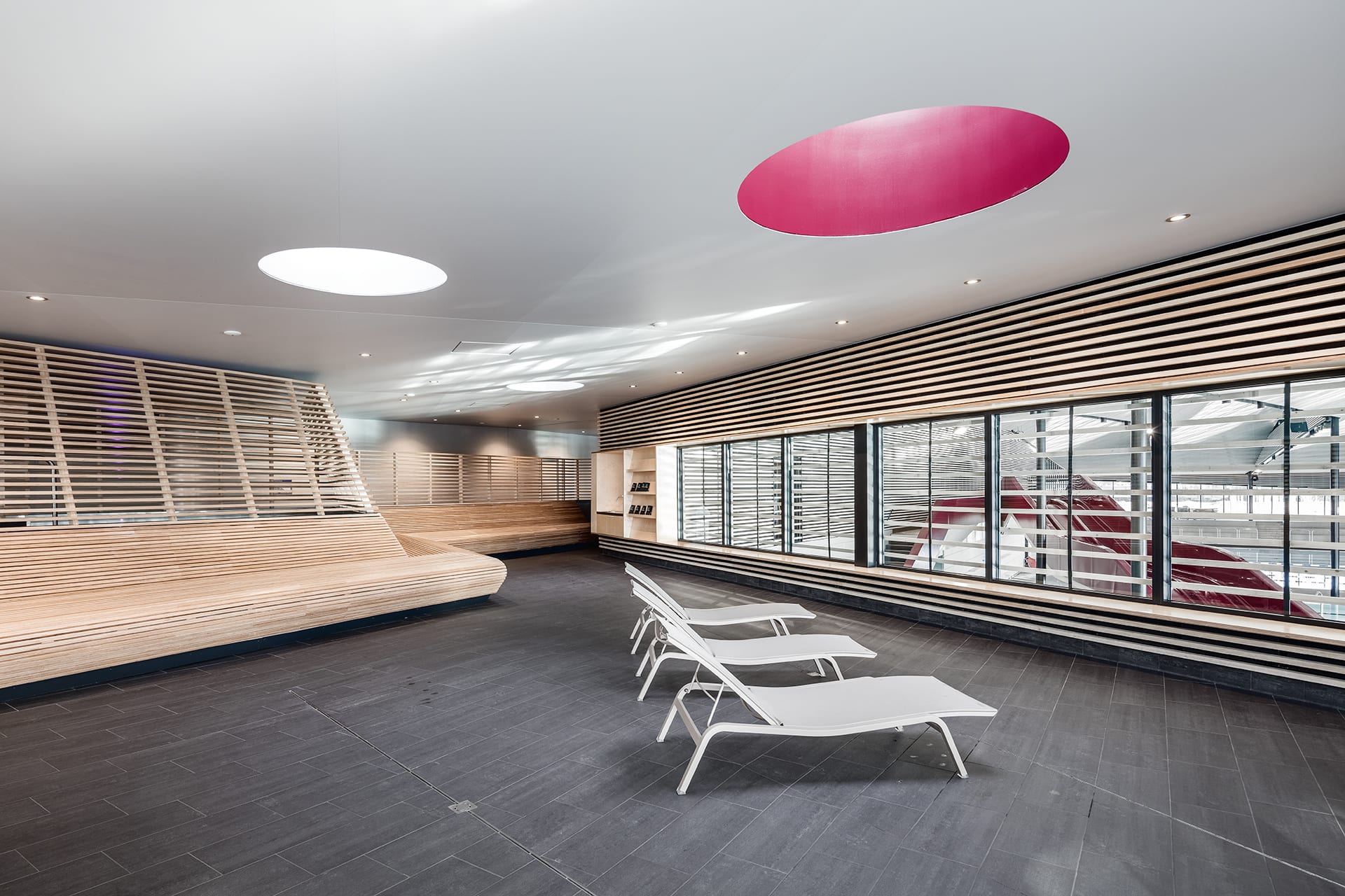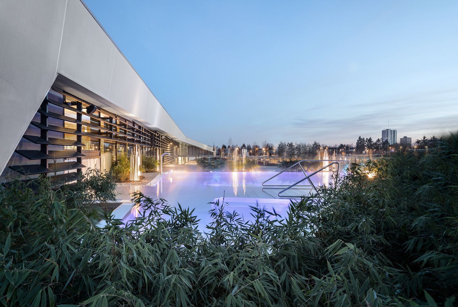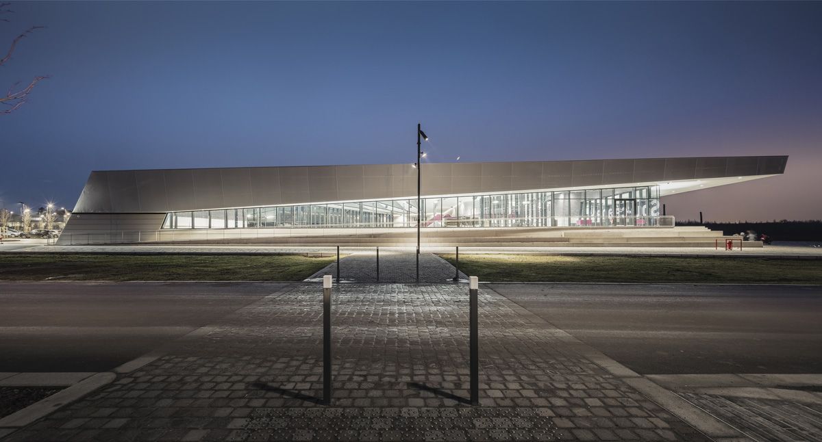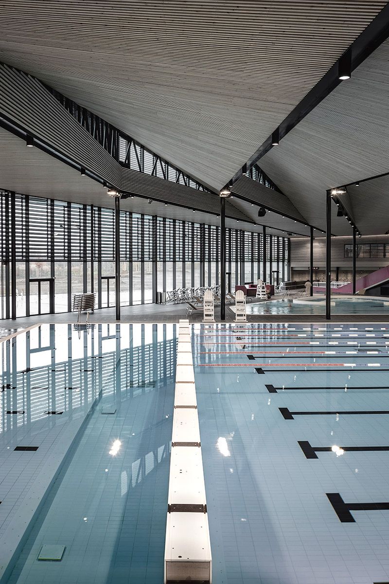 In Douai wird das neue Ökoquartier „Le Raquet“ einen neuen Teil der Stadt bilden, und das Centre Aquatique de Douai ist ein wesentlicher Bestandteil davon. Das Projekt entwickelt sich in Richtung der zukünftigen Straßenbahnhaltestelle und des zukünftigen städtischen Vorplatzes, der "Place Majeure", dem Herzen des neuen Viertels, an der Schnittstelle einer städtischen Struktur und eines städtischen Parks. Der Kontrast zwischen der städtischen Umgebung im Norden und Osten und dem Park im Süden und Westen erfordert eine architektonische Antwort, die diese Gegensätze miteinander verbindet. Die beiden Fassaden auf der Ebene der Eingangshalle sind vollständig transparent. Sie bieten somit einen kontinuierlichen Blick von den Innenbecken zu den Außenbereichen, während das Dach wie eine "fünfte Fassade" eine begrünte Kaskade bildet, die für die ökologischen Ambitionen des Viertels steht. Auf der anderen Seite, an der Grenze zum Stadtpark, zeichnet sich das Gebäude wie ein großer Hügel ab, wobei sich die Außenbereiche in Form von Terrassen auf verschiedenen Ebenen in der Nähe des Schwimmbads entwickeln und so eine Kontinuität und Erweiterung des Stadtparks herstellen. Das Gebäude wird durch die Anlage von bepflanzten Höhenlinien, die einer Reisfeldlandschaft ähneln, zur Landschaft. Diese beherbergen die Außenbecken und ihre Strände. Die Hauptherausforderung des Wellnessbereichs besteht darin, den Besucher in eine Atmosphäre der Entspannung einzuladen und in diese einzutauchen. Der Ort ist eine Einladung zu einer Reise, die alle Generationen um die Eindrücke großer Landschaften herum vereint. Alle fünf Sinne werden angesprochen, um das Publikum in einen entrückenden Wellness-Parcours und ein einzigartiges Erlebnis im Herzen des Stadtteils Raquet zu versetzen.