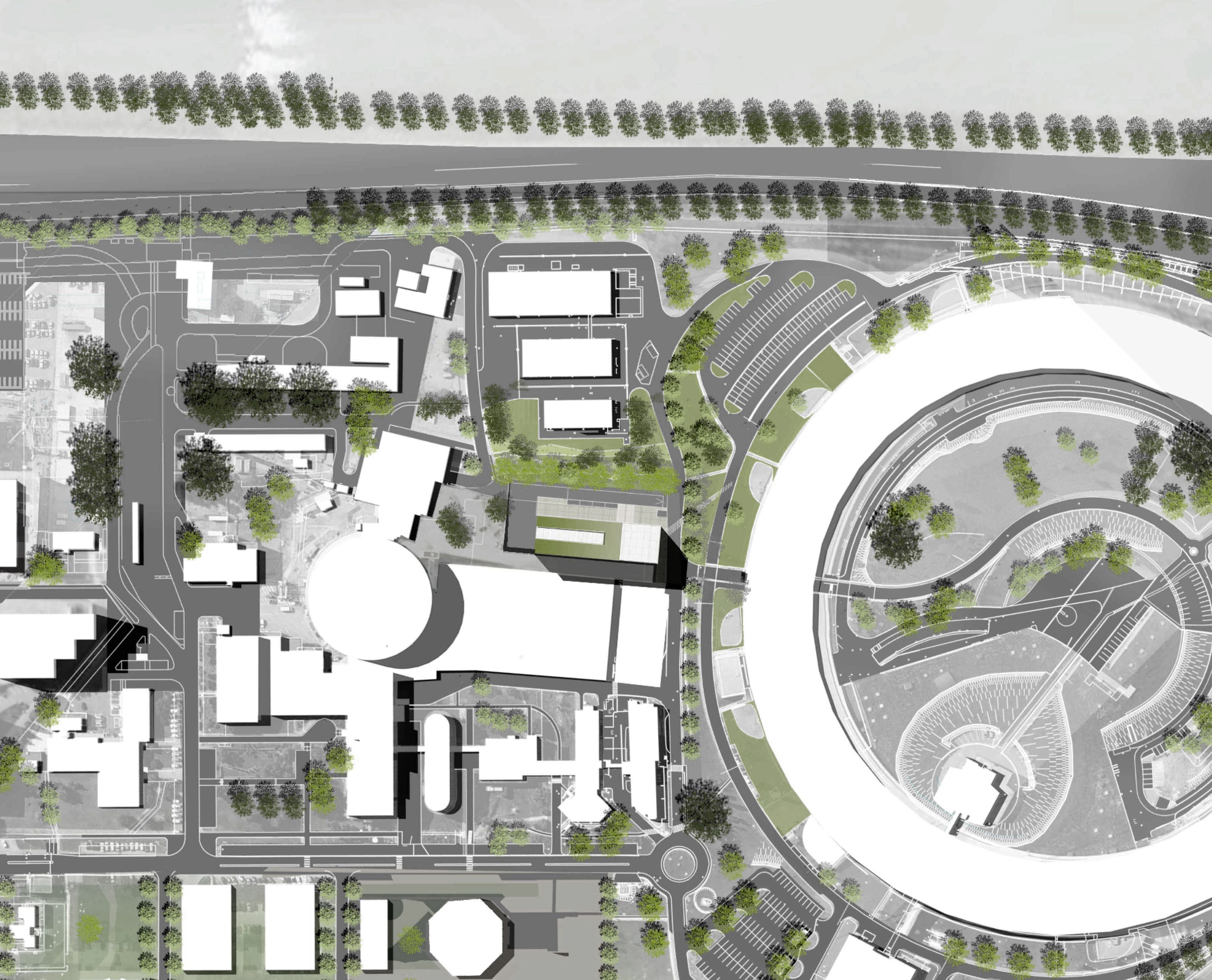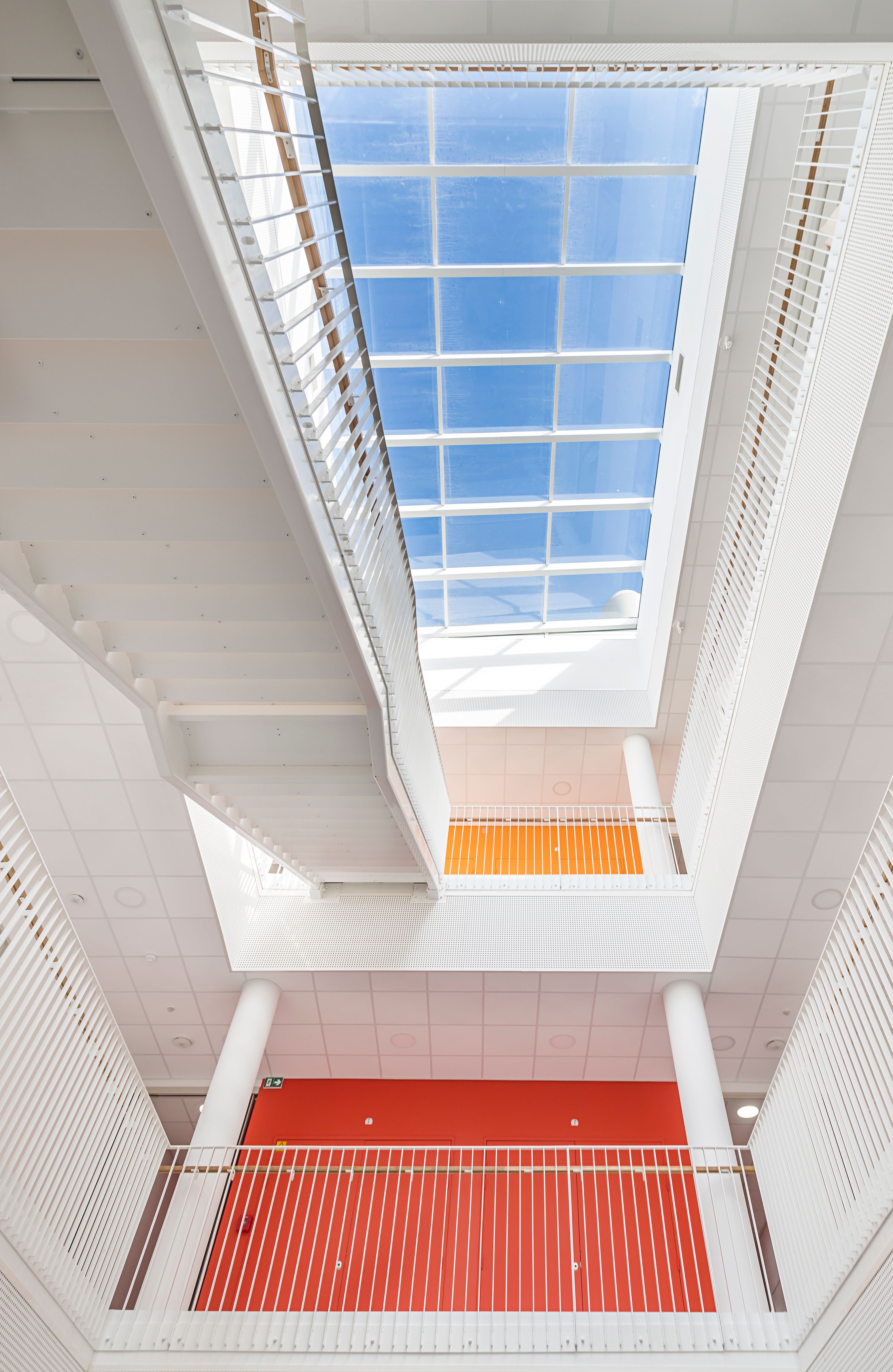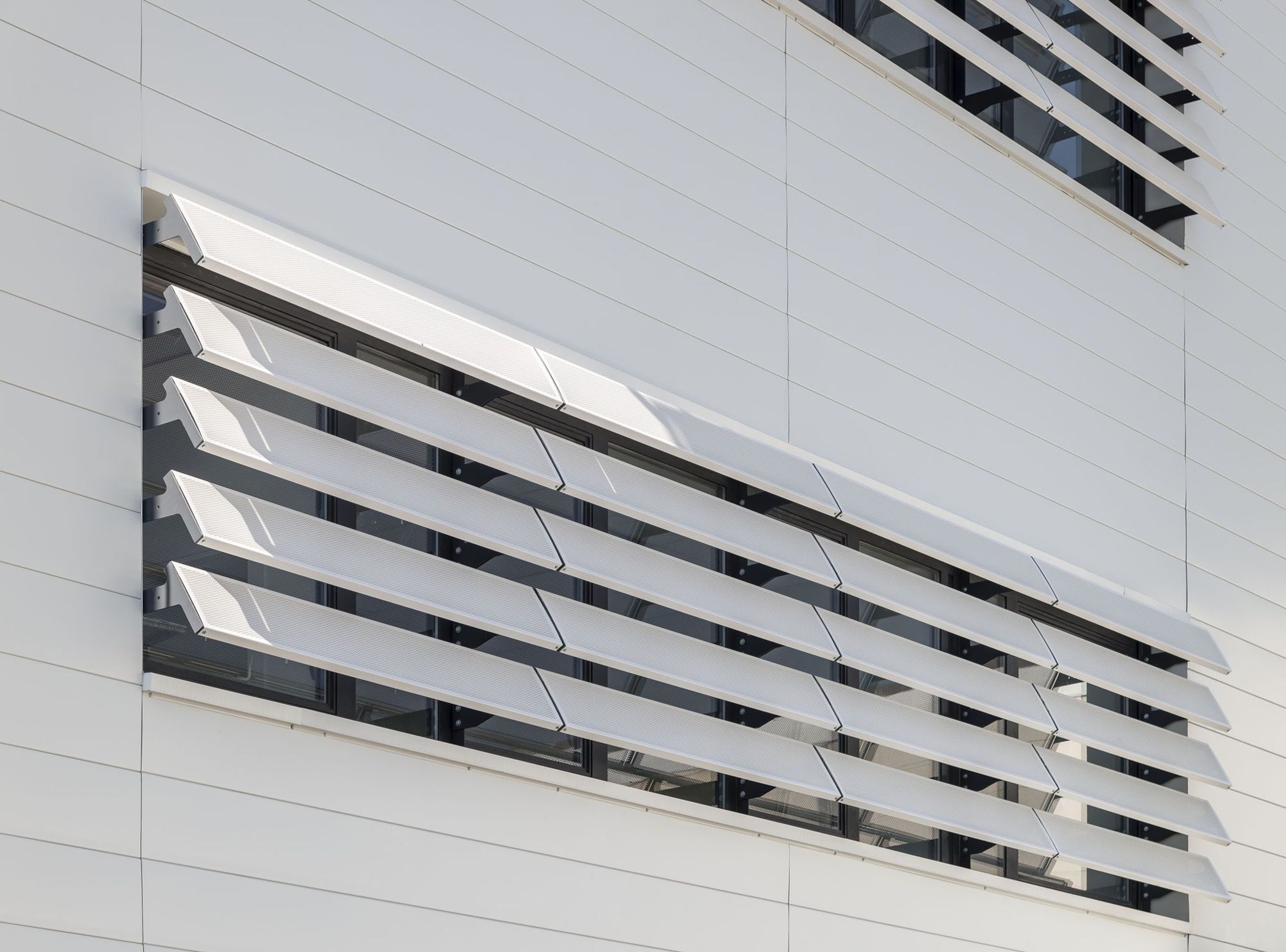 An der Spitze der Halbinsel des Polygone Scientifique präsentiert sich der monolithische Block des „Science Buildings“. Das Gebäude soll die Spitzentechnologie im Bereich der Erforschung von weicher Materie und Materalien unter extremen Bedingungen beispielhaft repräsentieren und wacht gleichsam über das gesamte Areal. Es fasst Bereiche für wissenschaftliche Forschung, Empfangsflächen und Büros in einer komplexen Anordnung zusammen. Die architektonische Herausforderung bestand darin, trotz der zahlreichen funktionalen Vorgaben, die Funktionen, Formen und Dimensionen gleichermaßen beeinflussen, ein homogenes Ensemble zu schaffen. Funktional wie architektonisch stellt das Gebäude eine Verbindung zwischen dem Neutronenreaktor ILL5 und dem Elektronenspeicherring des ESRF her. Formal entwickelt sich der Bau aus einem einfachen Quader, der durch das Spiel zwischen Massen und Fassadendurchbrüchen am Tag wie bei Nacht in Bewegung gehalten wird. Als beispielhaftes, modernes Forschungsinstitut soll das Gebäude die Baukultur unserer Epoche durch seinen innovativen und zukunftsweisenden Charakter repräsentieren. Realisiert wurde dieses Ziel in erster Linie durch die besondere Fassadengestaltung. Sie besteht auf den Etagenebenen aus hellen, perforierten Metallbändern, die regelmäßig an der Fassade angeordnet sind. Diese Elemente fungieren tagsüber vor opaken Flächen als Brüstungen und vor Fensterflächen als Sonnenschutz. Bei Nacht lassen sie das Science Building wie in weißes Licht gebadet erscheinen und verleihen ihm eine ruhige und reine Anmutung.
