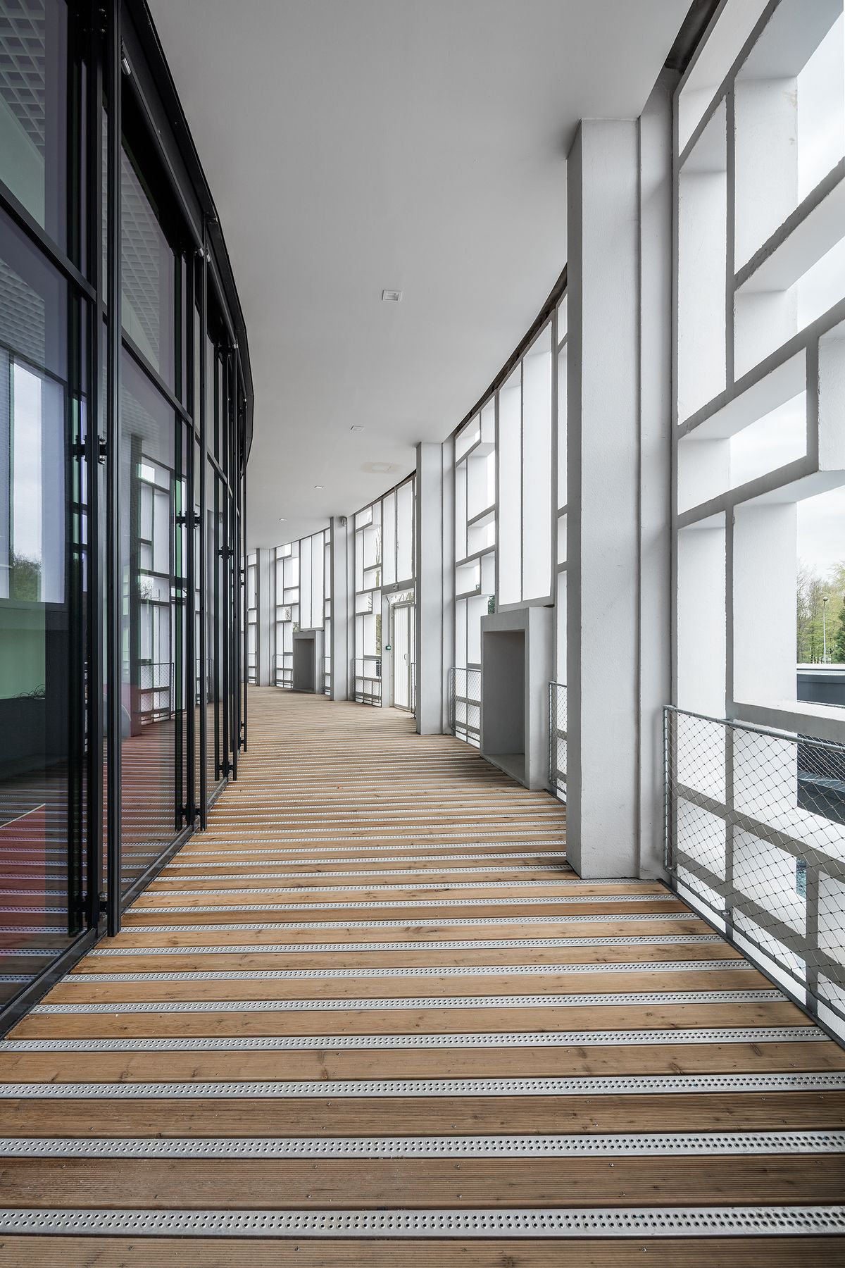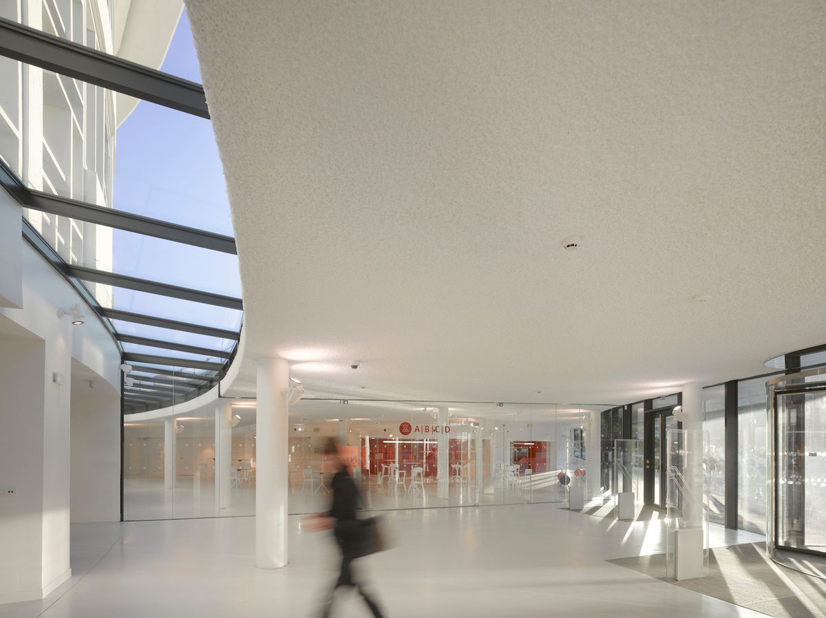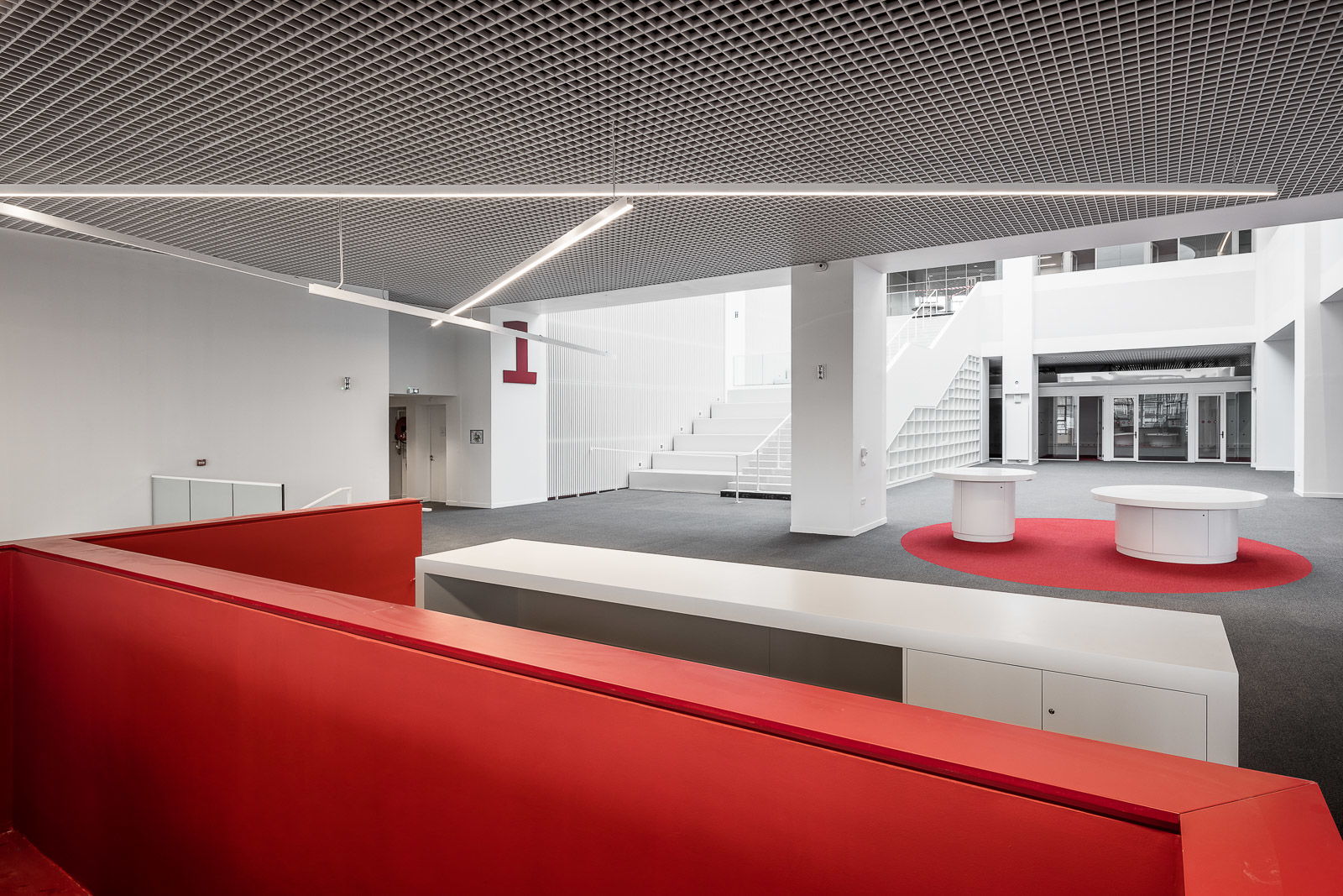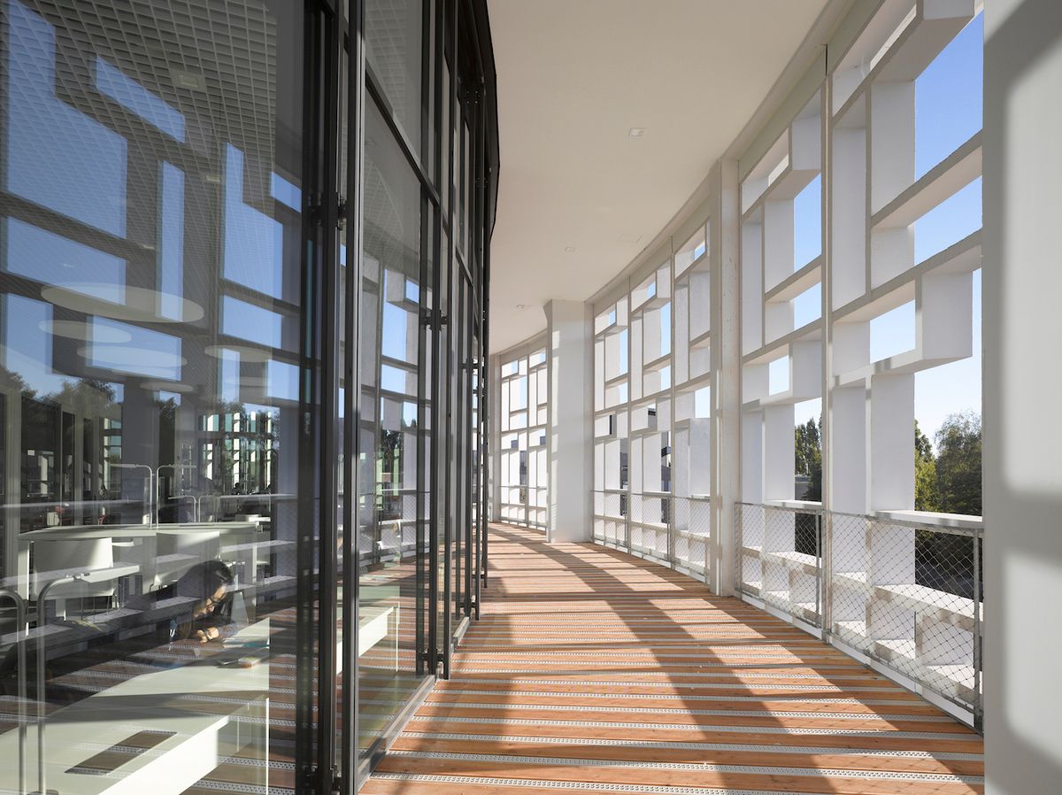 Zukunftsgerichtete Bildung erfordert zeitgemäße Konzepte, insbesondere die Erneuerung der universitären Infrastruktur, zu deren Entwicklung das französische Bildungsministerium maßgeblich beigetragen hat. Die Arbeiten zur Einrichtung und Erweiterung des "Learning Center Innovation" fallen in den Rahmen dieses Programms. Das Gebäude, in dem die derzeitige Bibliothek untergebracht ist, wurde 1965 von dem Architekten Noël Lemaresquier, einem Schüler von Le Corbusier, entworfen und ist strukturell gealtert. Ausschlaggebend war der Umgang mit der perfekten Kreisform des bestehenden Gebäudes und der Fassade, die erhalten bleiben sollte. Wir verzichteten daher auf eine typische Erweiterung des Gebäudes und bevorzugten stattdessen den Ausdruck einer landschaftlichen Lösung: Ein großes Landschaftselement umgibt das Volumen, schafft einen neuen Haupteingang und integriert die neuen Räume in das Konzept. Dieses Landschaftsplateau umgibt die Rotunde und hebt sich durch konzentrische Lichtstrahlen von ihr ab. Ein geschwungenes Dach beherbergt den neuen Empfangsbereich und die Nebenflächen, wobei alle Etagen durch eine Halle mit dem bestehenden Gebäude verbunden sind. Die traditionelle Bibliothek wird so in ein "Lernzentrum" umgewandelt. Die Organisation der Zugänge und die neuen Funktionen unter dem Plateau sind als "alt" und "neu" lesbar: Ein Oberlichtbereich verschiebt die landschaftliche Basis des bestehenden zylindrischen Volumens und nutzt das Lichtband als Schwelle zwischen dem alten und dem neuen Körper. Eine große Halle, die die Eingangsebene mit dem Obergeschoss verbindet, verbindet beide miteinander. Die bestehende Fassade wird weder zerbrochen noch verunstaltet. Die Form des bestehenden Gebäudes - die Geometrie des Kreises - dient als Gestaltungselement zwischen dem alten und dem neuen Körper. Die Kreisform wird wiederholt, skaliert und gegeneinander verschoben. Dadurch werden neue Räume mit unterschiedlichen Funktionen, architektonischen Qualitäten, Tiefen und Beleuchtungsstärken definiert. Die Aufteilung der Innenräume folgt der Komposition zwischen dem bestehenden Gebäude und dem neuen Landschaftsplateau. Während die weitläufigen Lesebereiche und Buchhandlungen im bestehenden Gebäude organisiert sind, werden Funktionen wie der Veranstaltungsbereich und das mit neuen Technologien beladene Xperium öffentlich in der Basis positioniert. Im digitalen Zeitalter lösen sich die Grenzen auf; die klassische Bibliothek ist überholt; digitale Medien und Interaktion gewinnen an Bedeutung und bewirken die Auflösung der räumlichen Grenzen in den Lernzonen. Das Gebäude entwirft eine Wissenslandschaft, die eine zentrale Halle als Kommunikationsraum umschließt. Verschiedene Lerninstitutionen verschmelzen miteinander und schaffen Räume mit multifunktionaler Nutzung, die den Nutzern flexibel einsetzbare Räume bieten. Die Arbeit mit der Innenfassade des kreisförmigen Gebäudes ermöglicht eine Erweiterung der Bibliothek in den Außenraum.