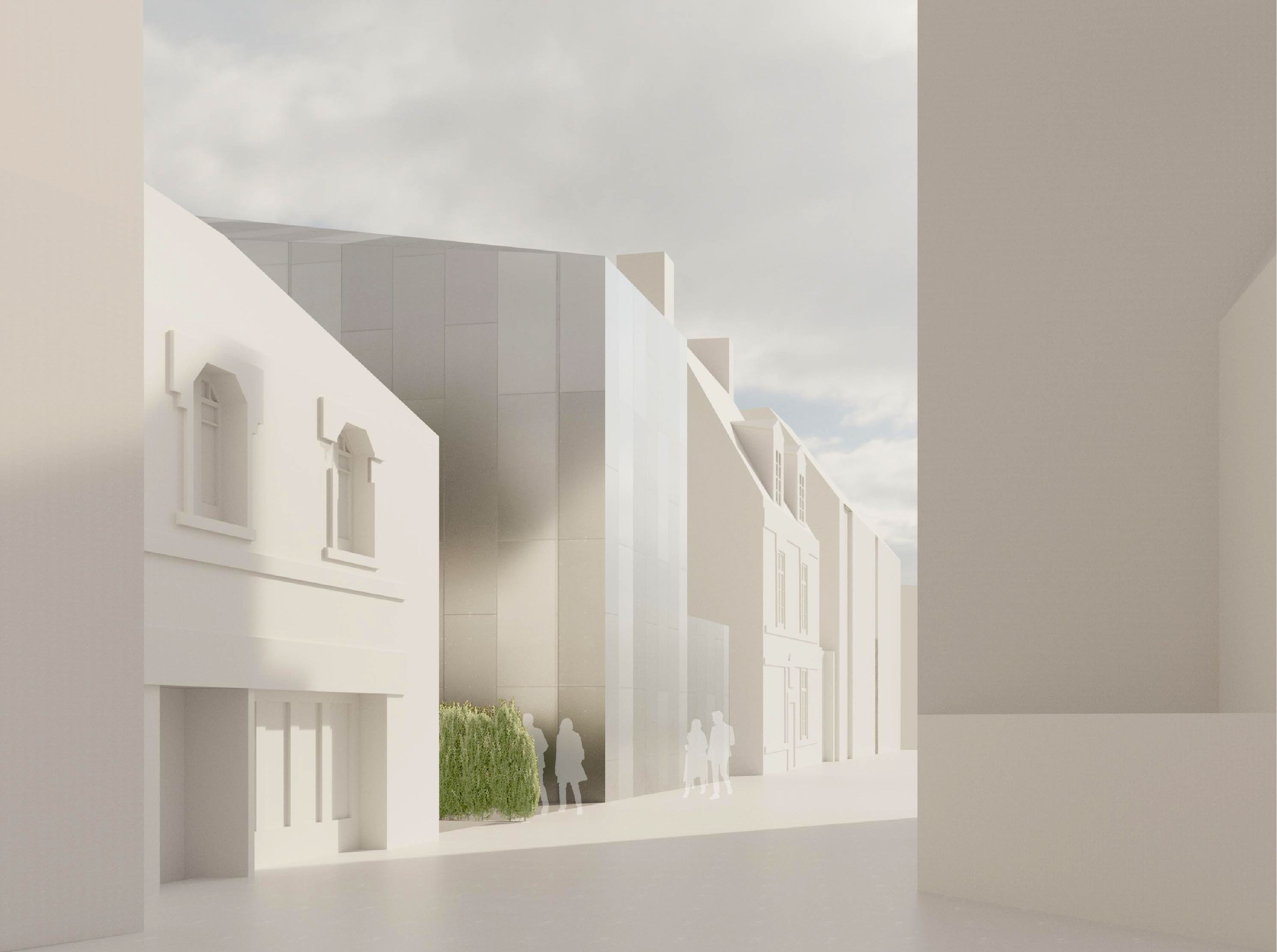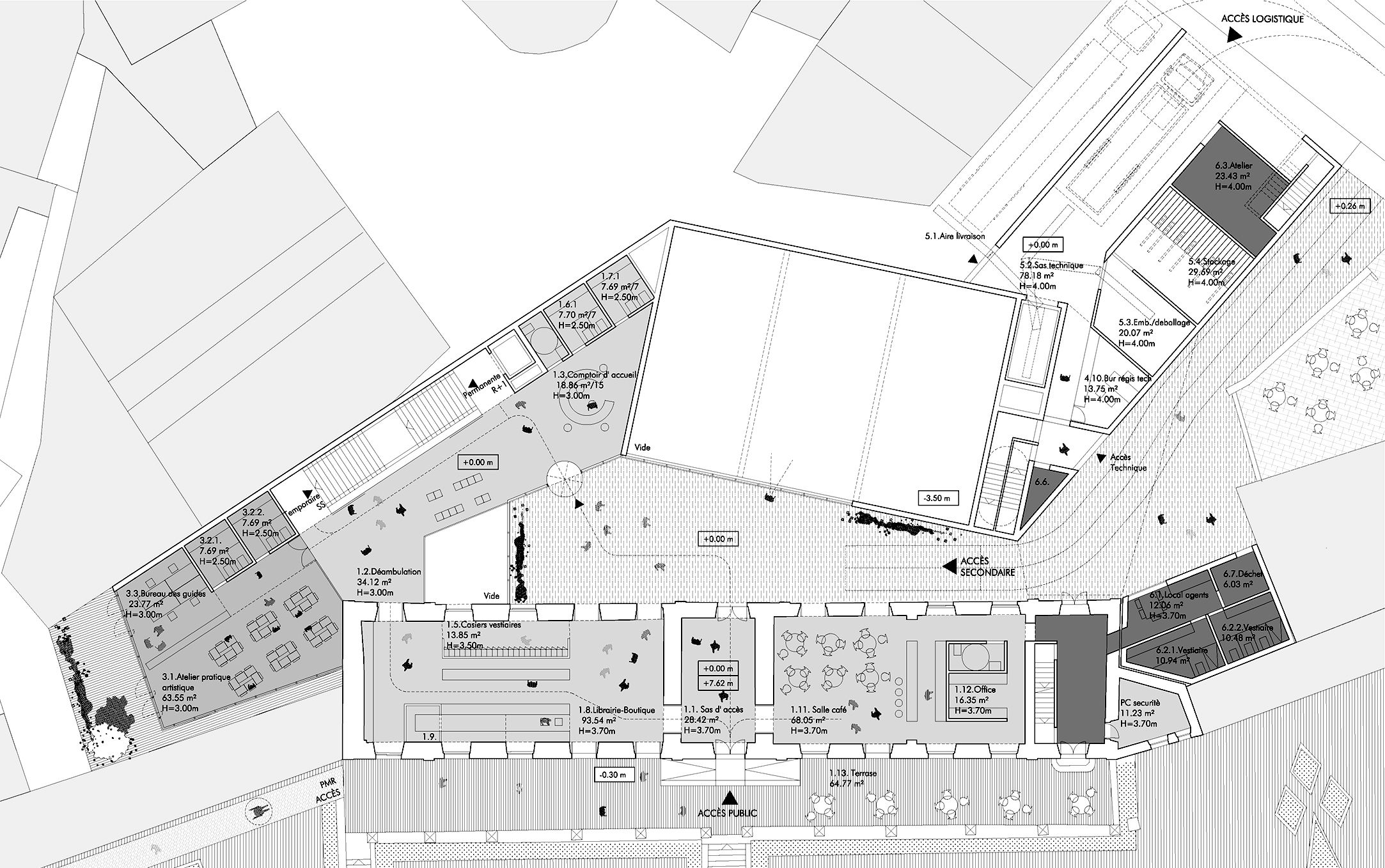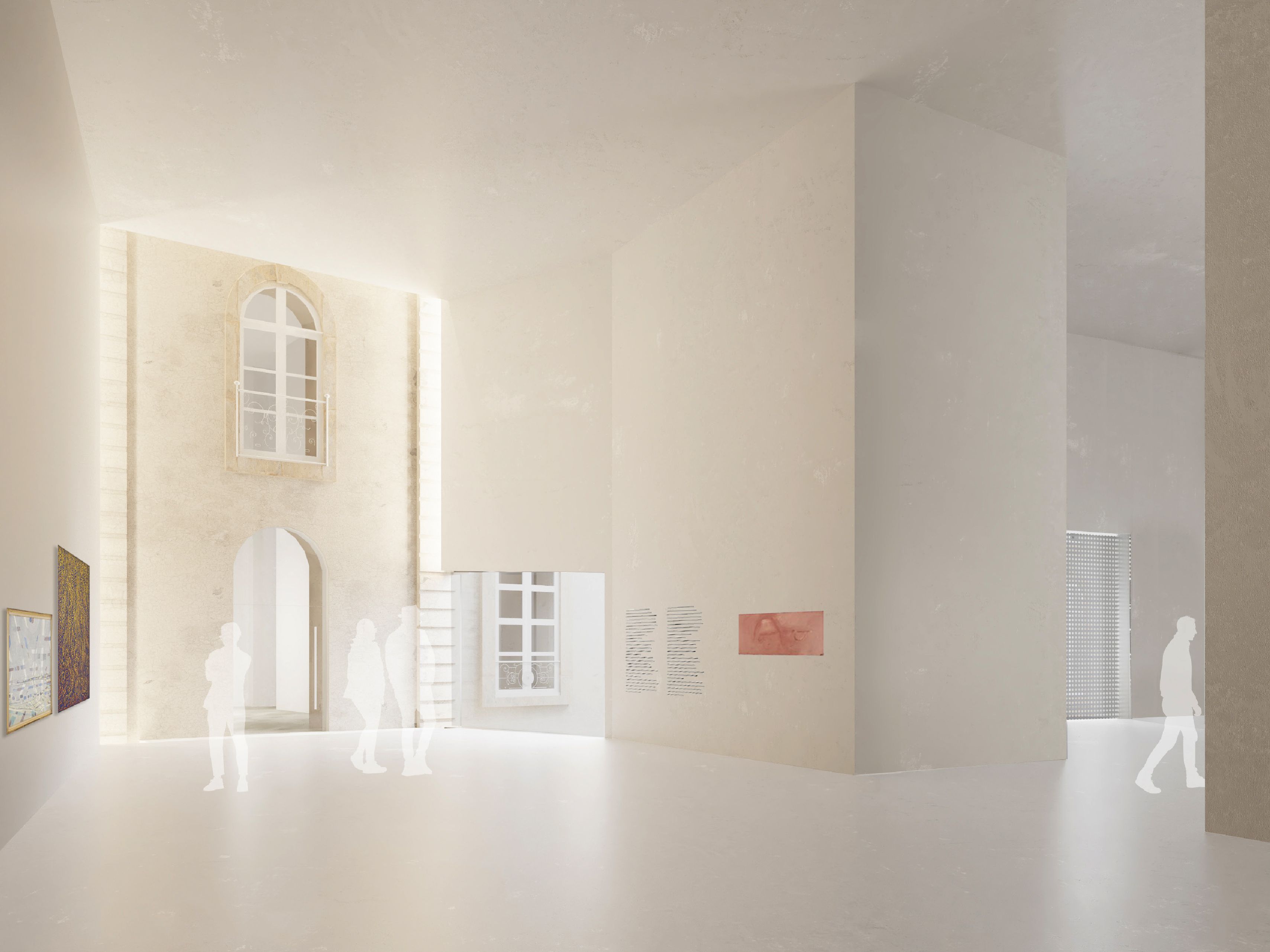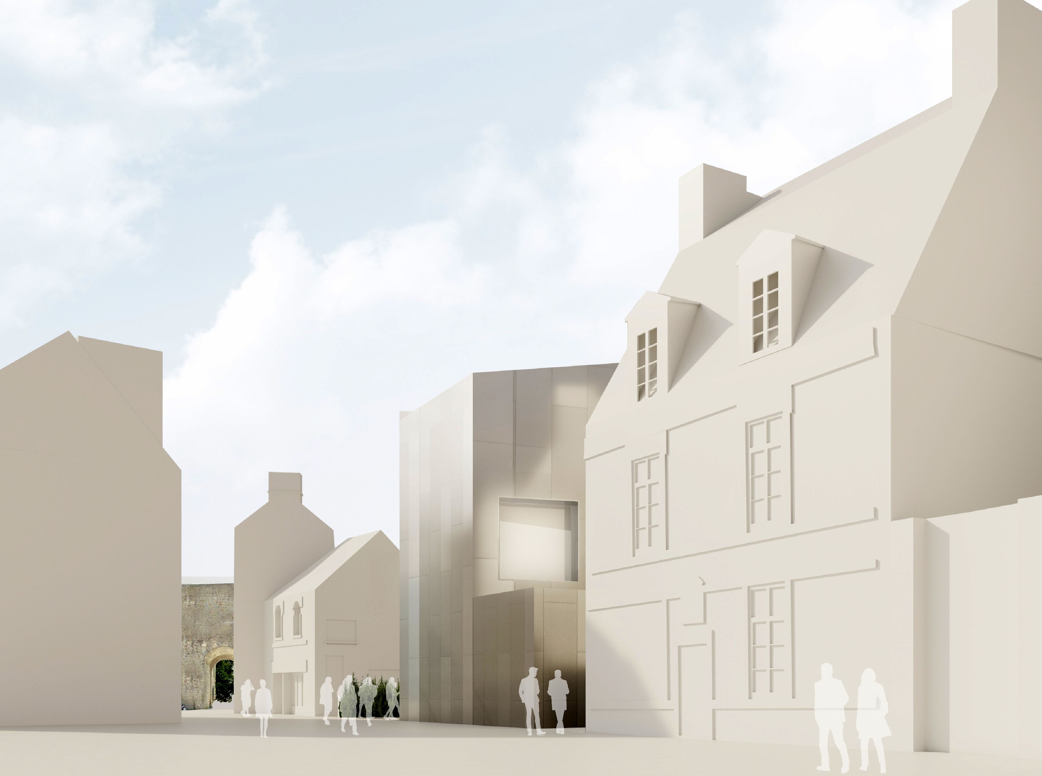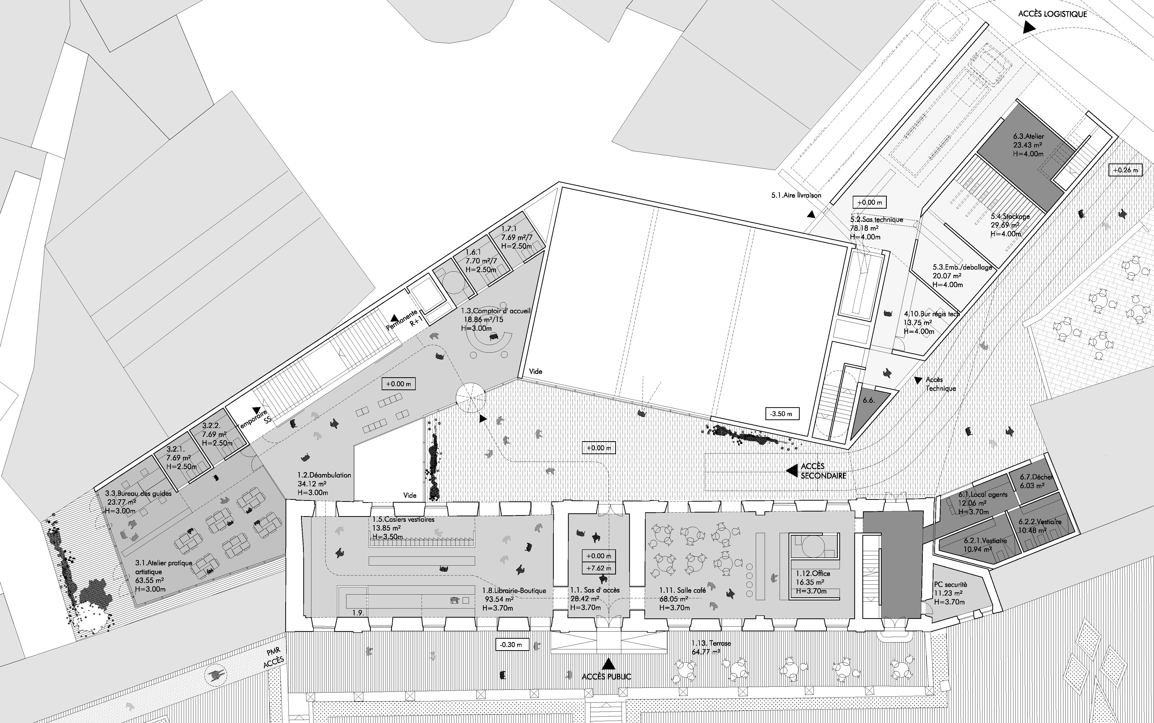 Das Projekt betrifft die Restaurierung und Umstrukturierung des Château de l'Hermine, eines historischen Denkmals der Stadt Vannes, sowie die Realisierung Erweiterungsbaus, um das neue Museum der Schönen Künste zu beherbergen, das das derzeitige Museum "La Cohue" ersetzt. Das Projekt für die Einrichtung des Museums der Schönen Künste ermöglicht die Aufwertung des Château de l'Hermine. Das Projekt entstand aus dem Wunsch heraus, das einzigartige Stadtbild des Schlosses zu erhalten und eine harmonische Beziehung zwischen der Erweiterung und dem historischen Gebäude zu schaffen. Das neue Volumen entwickelt sich innerhalb des geplanten Grundrisses, passt sich den funktionalen Bedürfnissen und Proportionen der Umgebung an. Es erinnert in der Geometrie seines Daches und seiner eigenen Form an die charakteristischen Dächer der mittelalterlichen Stadt. Das historische Gebäude beherbergt im Erdgeschoss den Buchladen und die Cafeteria und in den oberen Stockwerken einen Teil der Dauerausstellungen, während der Erweiterungsbau, der auf dem derzeitigen Schlosshof errichtet wird, die Wechselausstellungen, den anderen Teil der Dauerausstellungen sowie Logistik- und Verwaltungsbereiche beherbergt. Der Erweiterungsbau wird sich durch seine Materialität außerhalb des Museumsgeländes in den Himmel der Stadt Vannes einfügen, wobei die visuelle Dominanz des Schlosses gewahrt bleibt. Dieser Vorschlag berücksichtigt die Größe der Umgebung und das kulturelle Erbe des Standorts und ist sich der Rolle der zeitgenössischen Architektur in Bezug auf die Gegenwart, Vergangenheit und Zukunft der Stadt bewusst. Die Frage der klimatischen Behandlung der Räume ist bei einem Museumsprojekt, das in ein bestehendes Gebäude integriert wird, von grundlegender Bedeutung, da es gilt, die Erhaltung der Werke mit einer perfekten Beherrschung der klimatischen Aspekte und den Zwängen eines bestehenden Gebäudes in Einklang zu bringen. Aus diesem Grund sind Umweltaspekte so wichtig. So besteht die Strategie für dieses Projekt darin, die hygienische Lufterneuerung von der Klimakontrolle der Räume zu trennen, es wurden biologische Materialien bevorzugt und das Projekt zielt darauf ab, die RE 2020-Schwellenwerte 2022 für die Erweiterung und NF HQE Bâtiment tertiaire rénovation 2015 zu erfüllen.